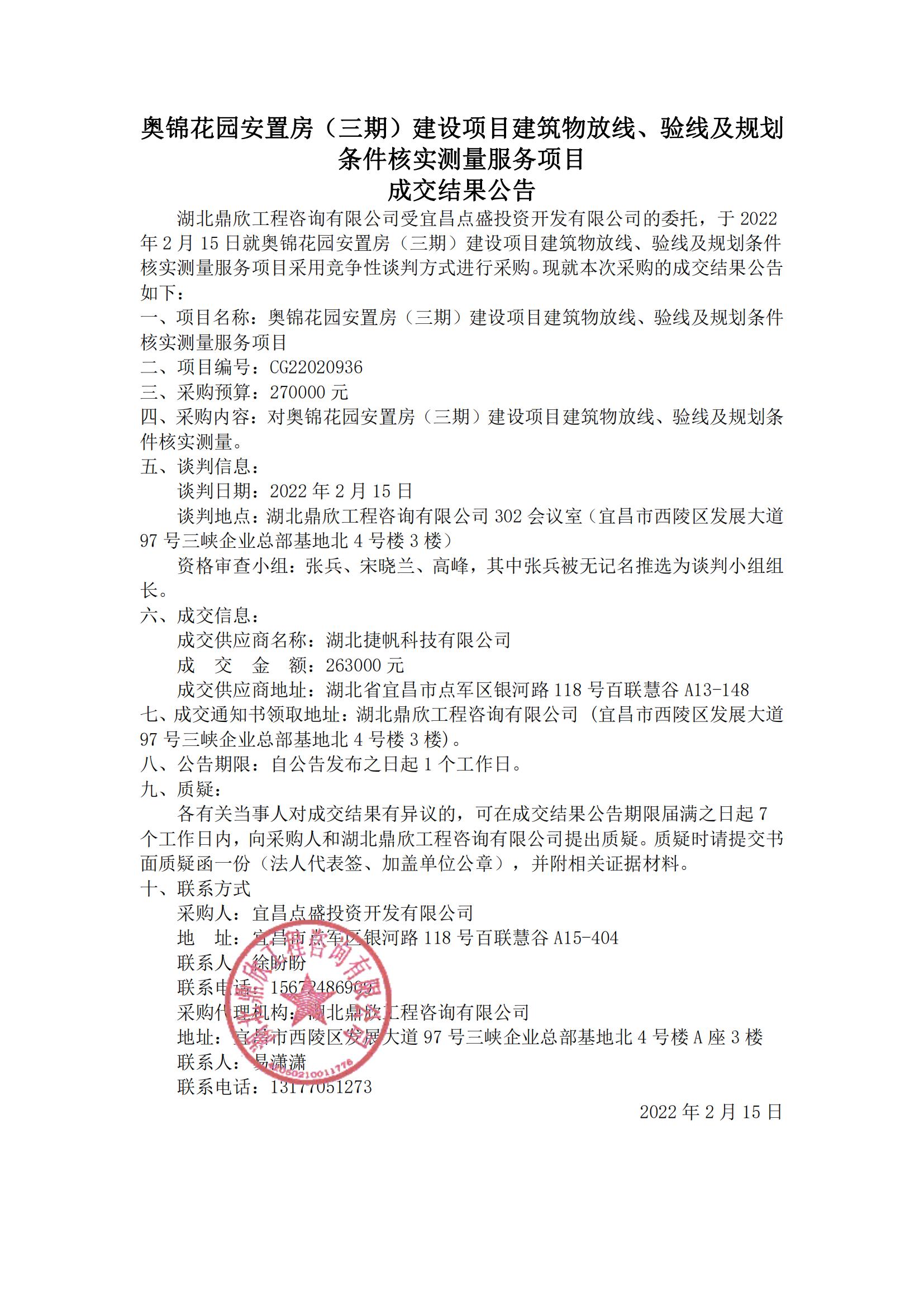 奧錦花園安置房(三期)建設(shè)項目建筑物放線、驗線及規(guī)劃條件核實測量服務(wù)項目成交結(jié)果公告