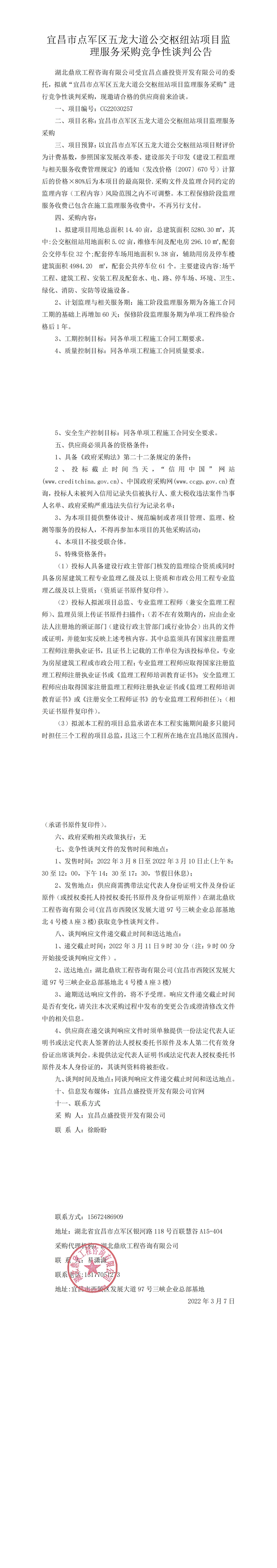 宜昌市點軍區(qū)五龍大道公交樞紐站項目監(jiān)理服務(wù)采購競爭性談判公告