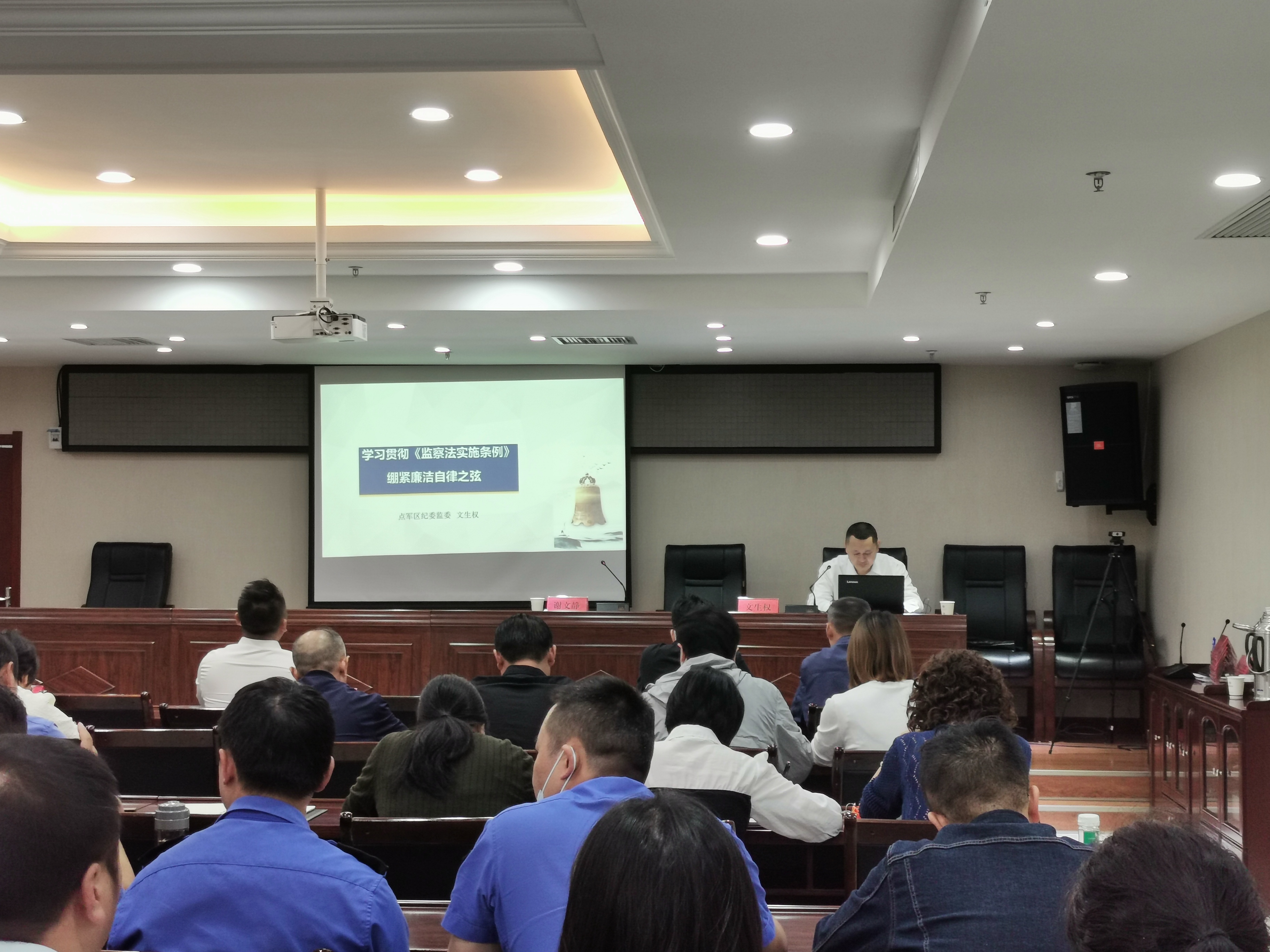 宣講以《學(xué)習(xí)貫徹<監(jiān)察法實(shí)施條例>繃緊廉潔自律之弦》為題,從《監(jiān)察法》及實(shí)施條例的關(guān)系,《條例》制定的背景、重要意義及主要內(nèi)容,職務(wù)犯罪釋義及幾種典型職務(wù)犯罪解析,公職人員禁止經(jīng)商辦企業(yè)的相關(guān)規(guī)定,如何做一名遵紀(jì)守法的黨員干部五個(gè)方面進(jìn)行講解,以案說(shuō)紀(jì),進(jìn)一步教育廣大黨員干部樹(shù)牢紀(jì)法意識(shí)。