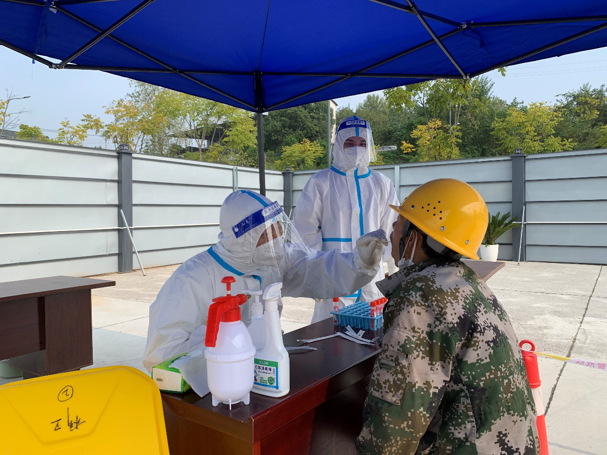 11月5日,為響應(yīng)區(qū)政府防疫部門(mén)有關(guān)防疫要求,全面筑牢疫情防線(xiàn),切實(shí)保障全體施工人員的身體健康和生命安全,點(diǎn)盛公司聯(lián)動(dòng)點(diǎn)軍區(qū)橋邊衛(wèi)生院和國(guó)機(jī)集團(tuán)在奧錦花園安置房(三期)項(xiàng)目部開(kāi)展核酸采樣試點(diǎn)運(yùn)行工作。取得核酸采樣合格證的奧錦花園三期項(xiàng)目安全員李懿、龍明超為本項(xiàng)目300余名工人順利的完成了核酸采樣工作。