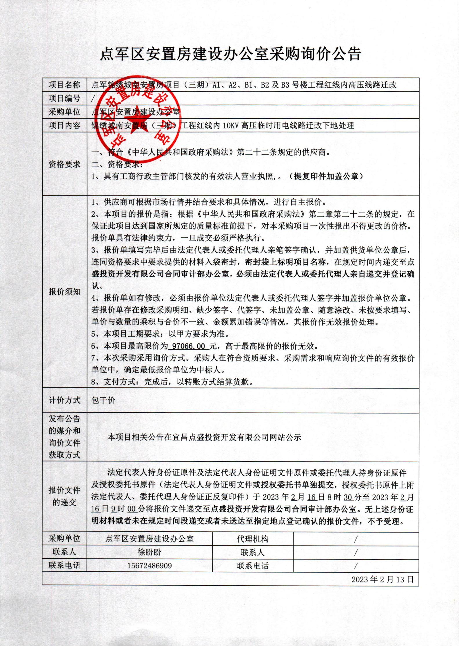 錦繡城南三期(EPC+F)工程紅線內(nèi)高壓遷改詢價(jià)公告