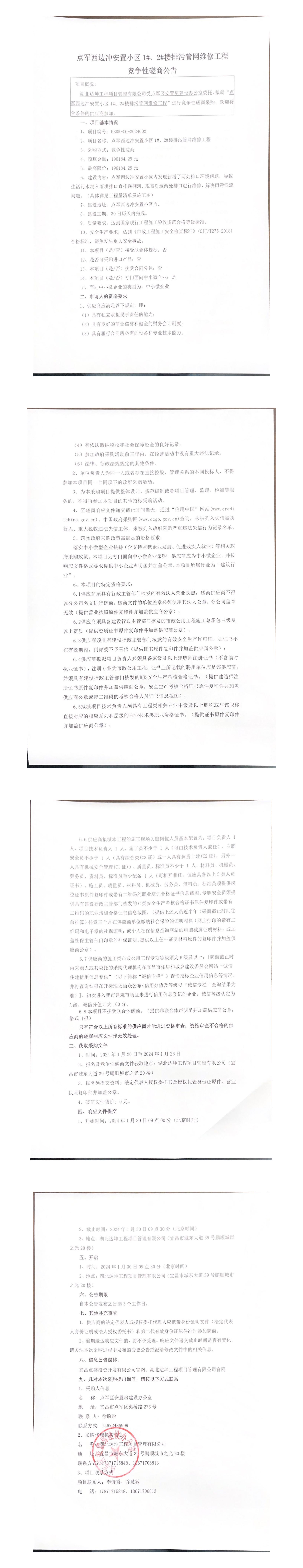點(diǎn)軍西邊沖安置小區(qū)1#、2#樓排污管網(wǎng)維修工程競爭性磋商公告