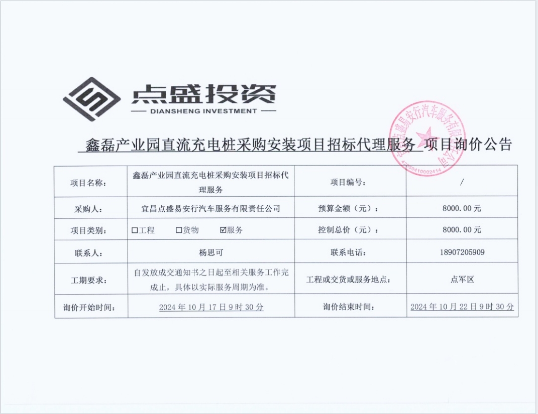 鑫磊產(chǎn)業(yè)園直流充電樁采購(gòu)安裝項(xiàng)目招標(biāo)代理服務(wù)詢價(jià)公告