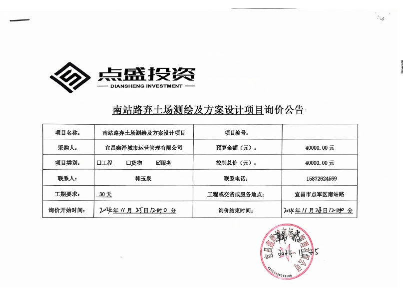 南站路棄土場(chǎng)測(cè)繪及方案設(shè)計(jì)項(xiàng)目詢價(jià)公告