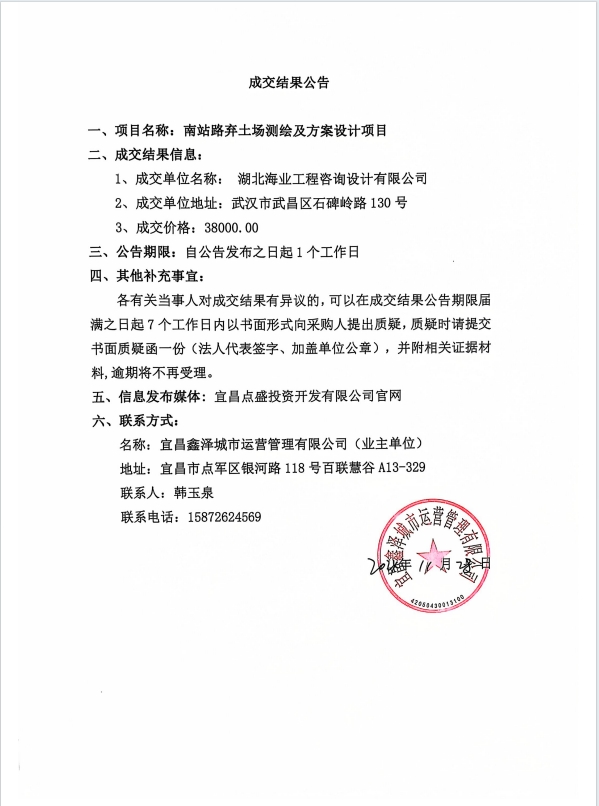 南站路棄土場測繪及方案設(shè)計(jì)項(xiàng)目成交公告