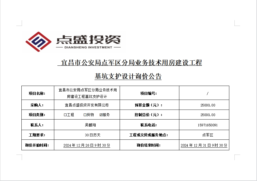 宜昌市公安局點(diǎn)軍區(qū)分局業(yè)務(wù)技術(shù)用房建設(shè)工程基坑支護(hù)設(shè)計詢價公告