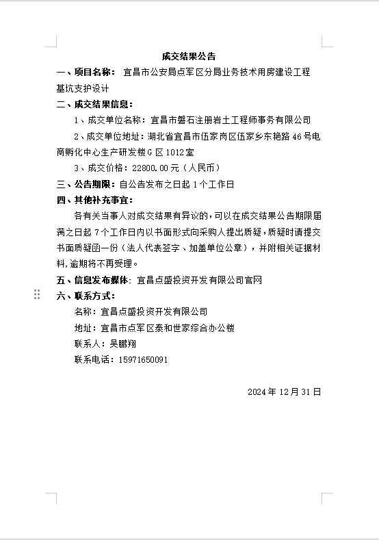 宜昌市公安局點(diǎn)軍區(qū)分局業(yè)務(wù)技術(shù)用房建設(shè)工程基坑支護(hù)設(shè)計成交公告