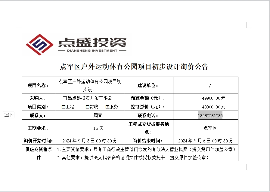 發(fā)布時間:2024/9/3 來源:宜昌點盛投資開發(fā)有限公司 訪問:6314
