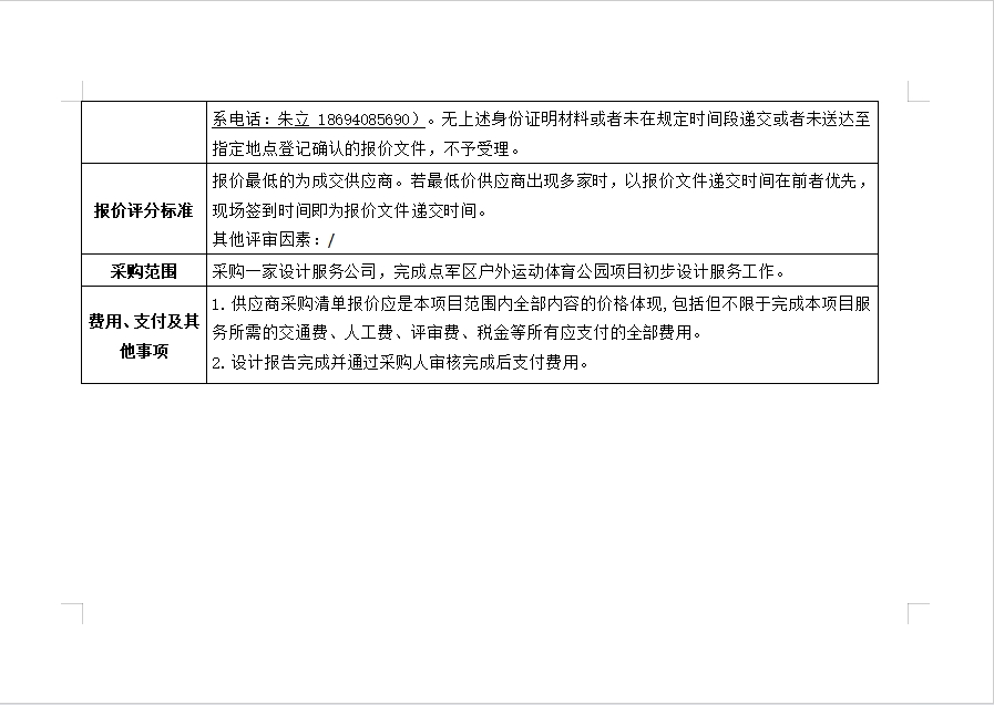 點軍區(qū)戶外運動體育公園項目初步設(shè)計詢價公告