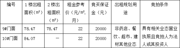 上述第9號門面房整體出租1至2樓,10#門面房只出租一樓。目前,上述門面房均處于空置的毛坯狀態(tài),現(xiàn)狀分別對外出租。相關(guān)競買事項詳見本公司拍賣資料中的《競買協(xié)議》樣本特別說明條款內(nèi)容,且標的物自公告之日起至2021年12月10日17:00止,在標的物現(xiàn)場展示(集中看房時間定于2021年12月10日8:30-12:00,14:00-17:00)。